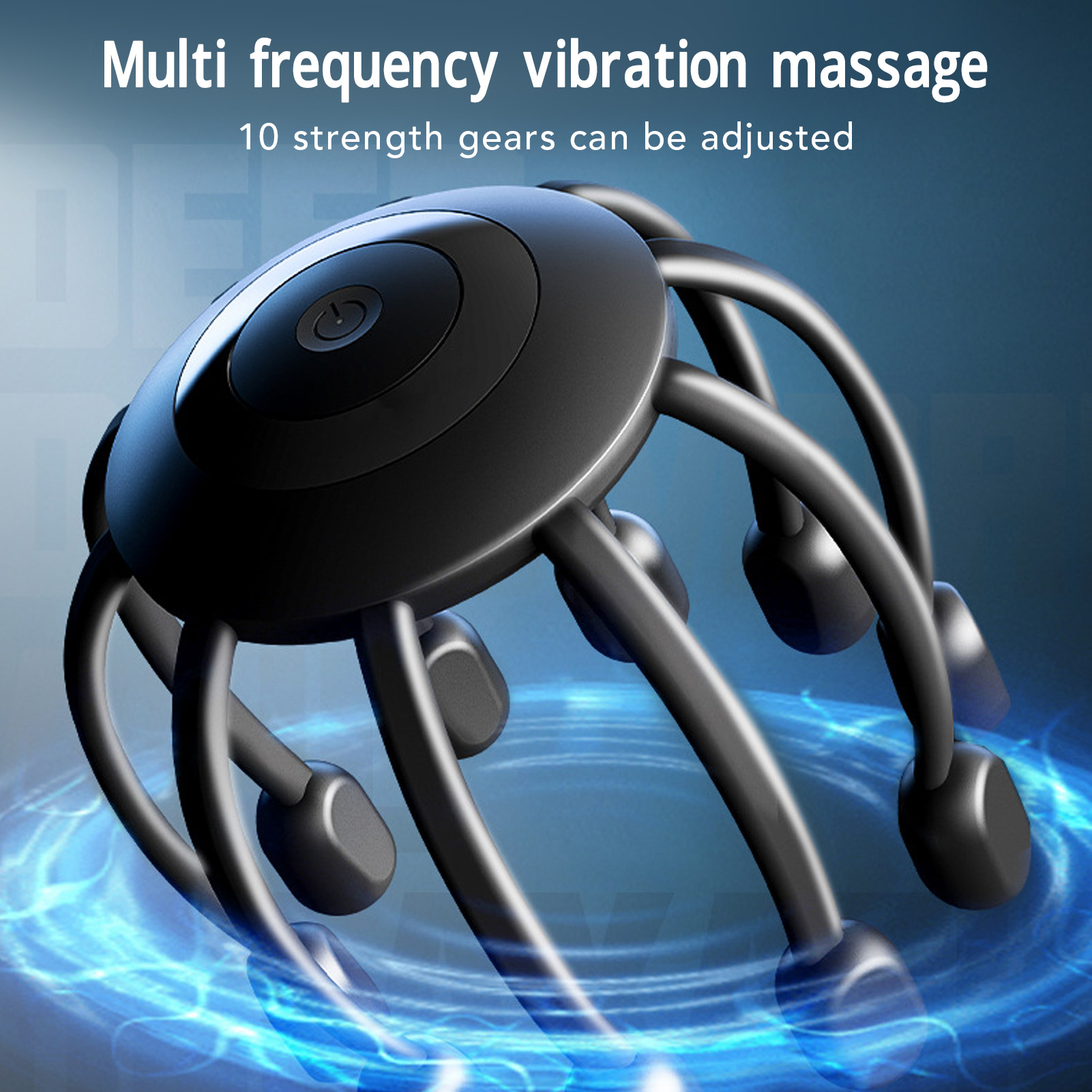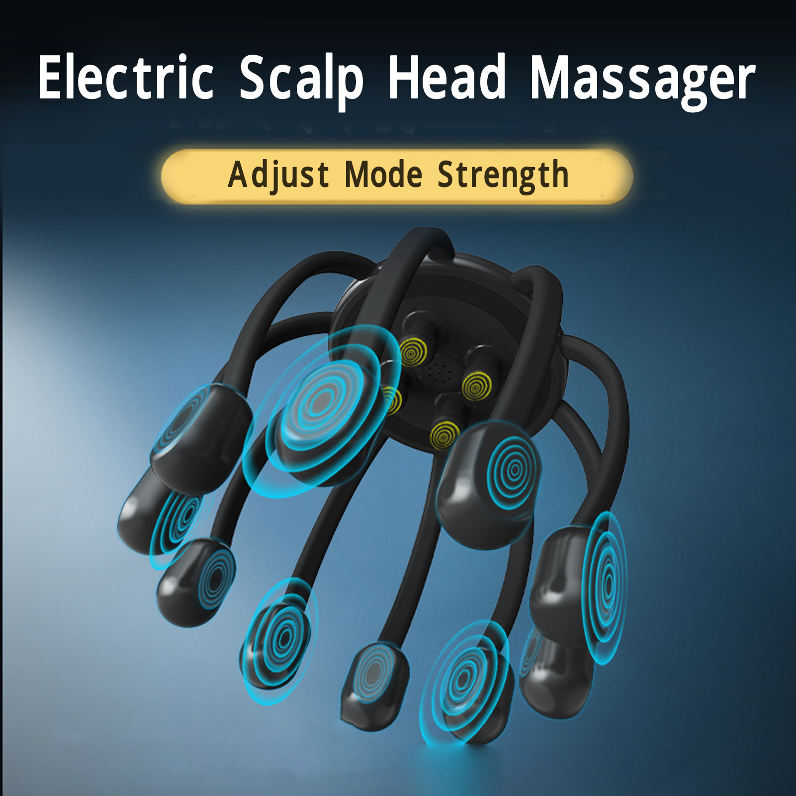 ريح دماغك… وسيبه يهزّ التعب.” جهاز تدليك رأس أوتوماتيكي قابل للشحن بتصميم أخطبوط بدون استخدام اليدين، 3 أوضاع اهتزاز للاسترخاء وتخفيف التوتر والصداع الخفيف.